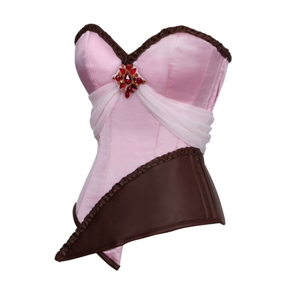 - Pink Satin & Faux Leather Braided Trimming Corset