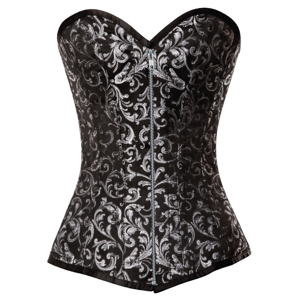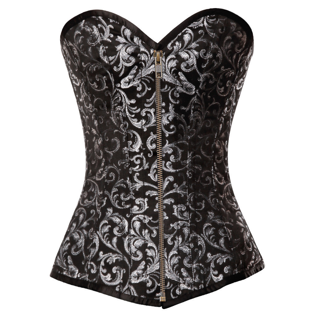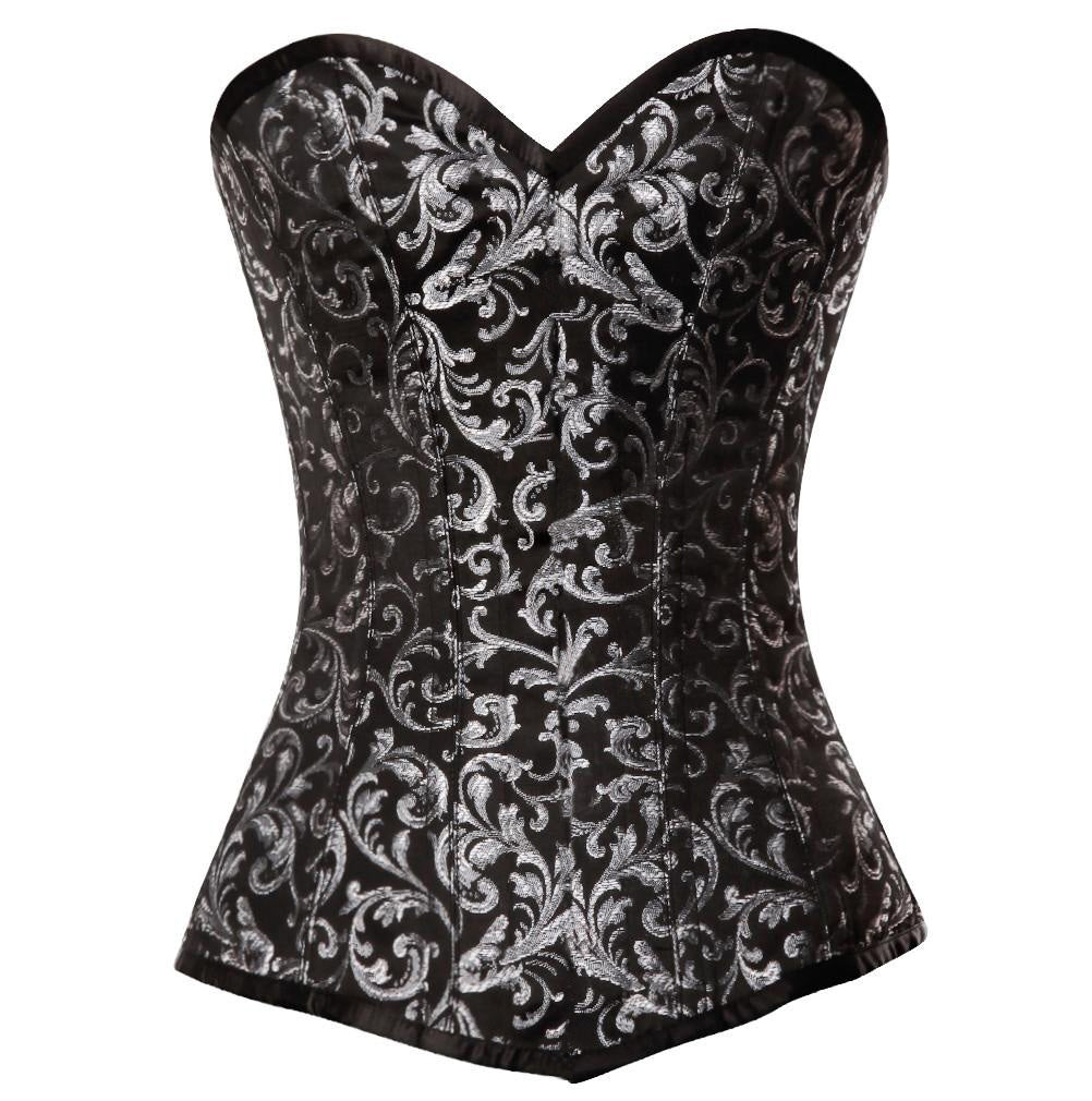 - Black & Silver Brocade Steampunk Overbust Corset