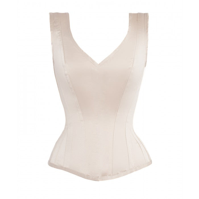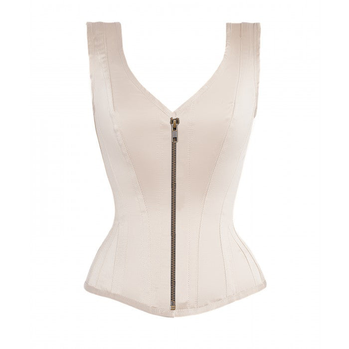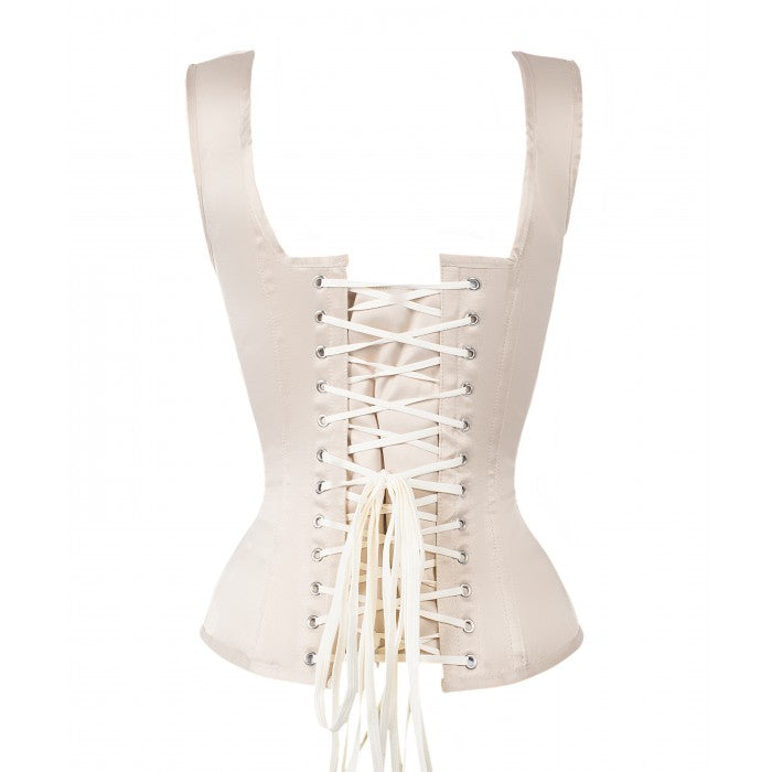 - Authentic Steel Boned Ivory Satin Overbust Corset