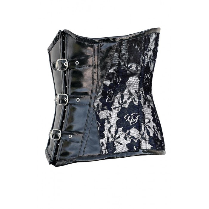 - Ivory Corset With Black Lace Overlay And PVC Front