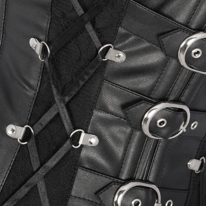 - Black Faux Leather Overbust Corset with Criss Cross Lacing