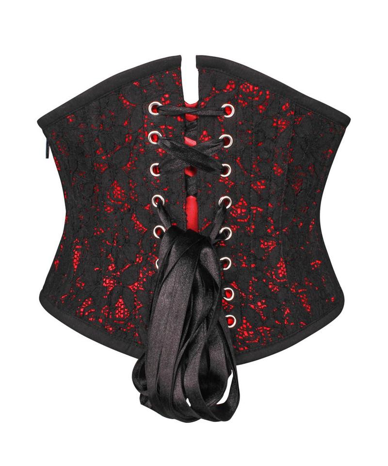 - Spiral Steel Boned Lace Overlay Underbust Corset with Side Zip Opening