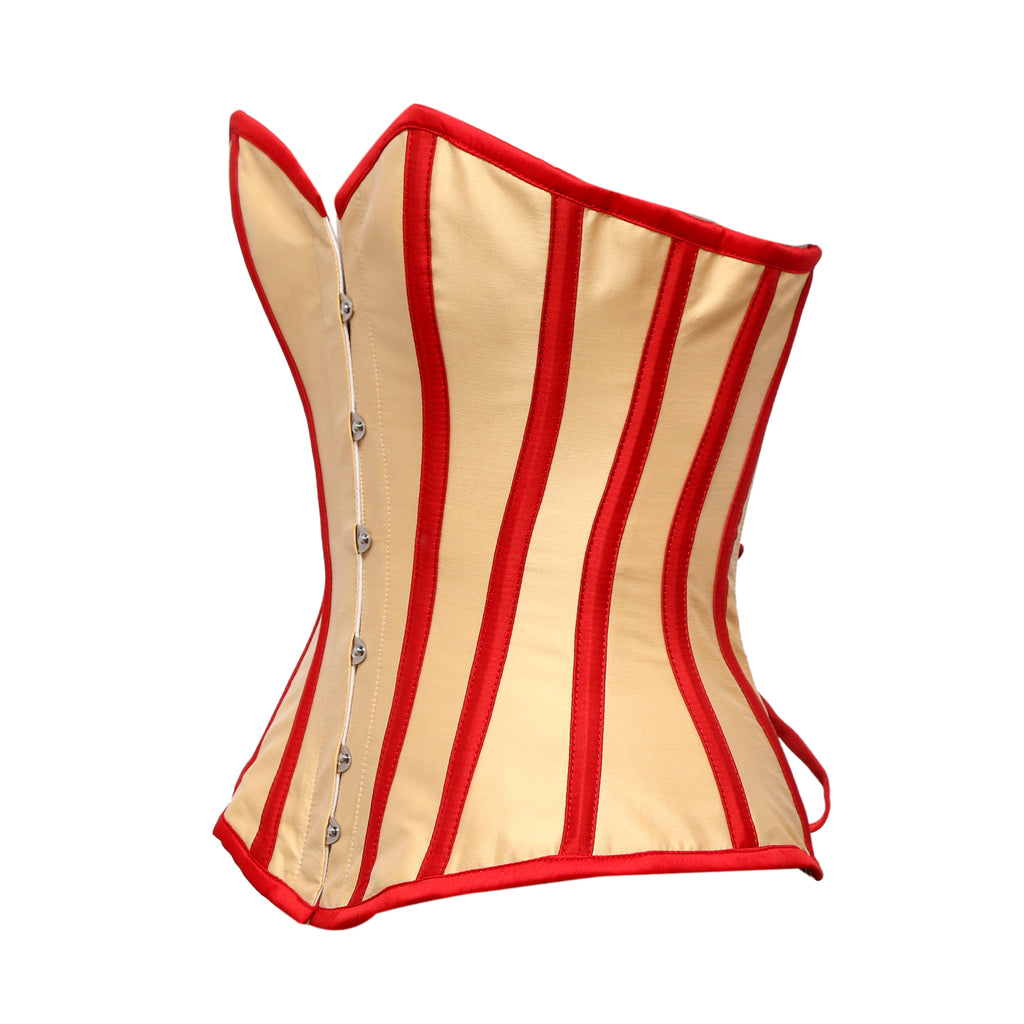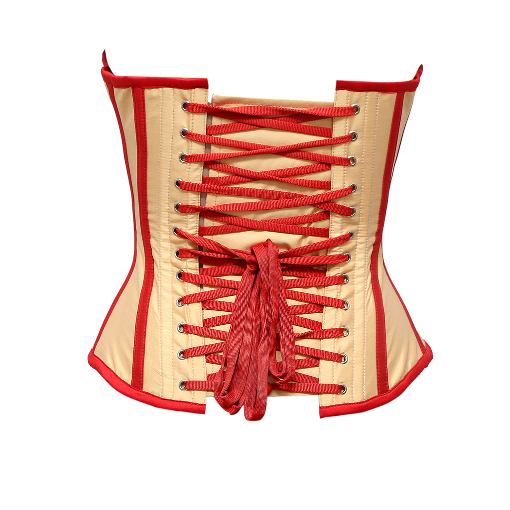 - Fabric: Beige Taffeta With Red Taffeta Trim