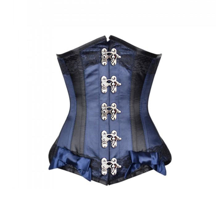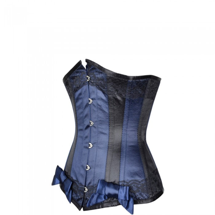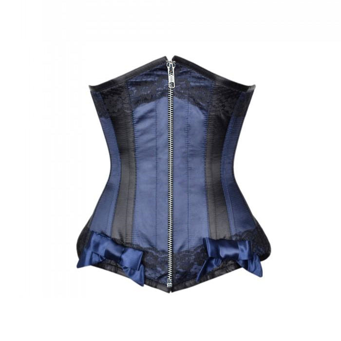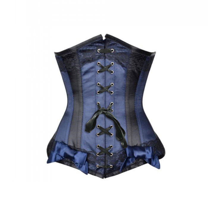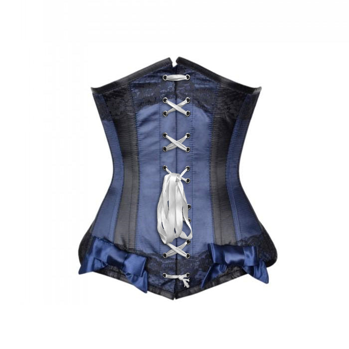 • Blue Satin Underbust With Black Panels