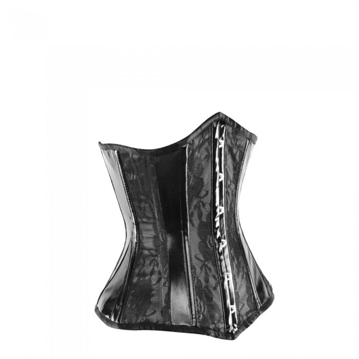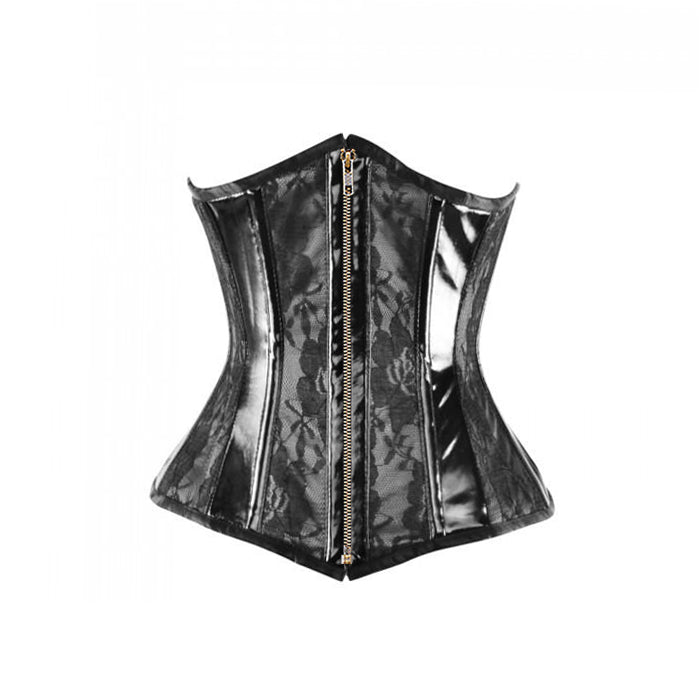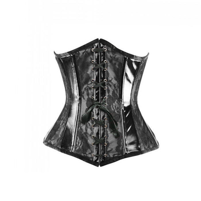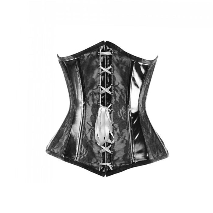 - Black Satin Underbust With Lace Overlay And PVC Trim