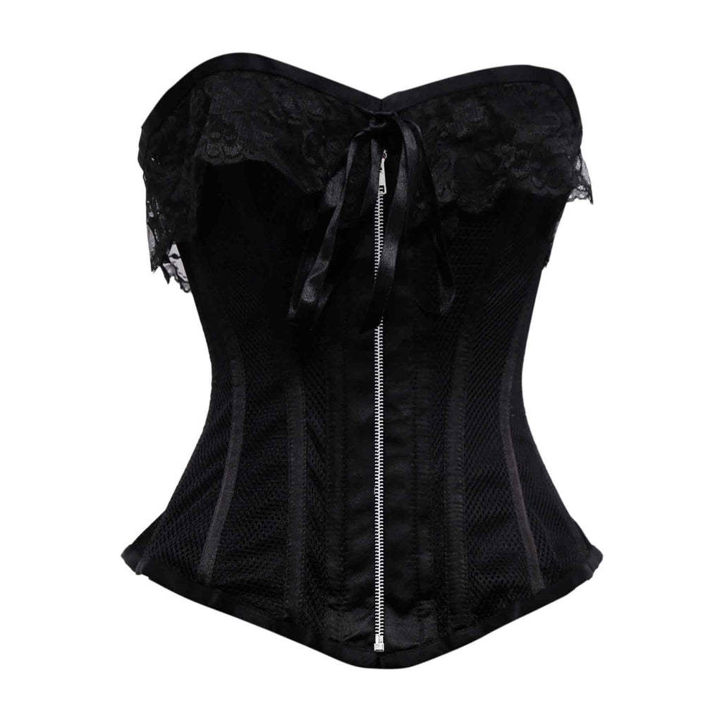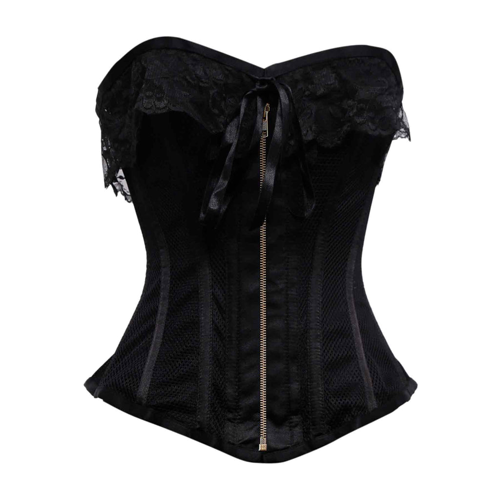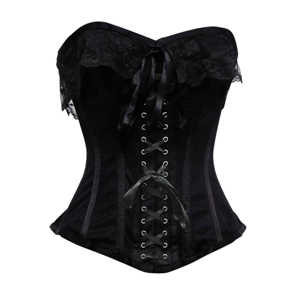 - Black Mesh & Satin Lace Steel Boned Overbust Corset