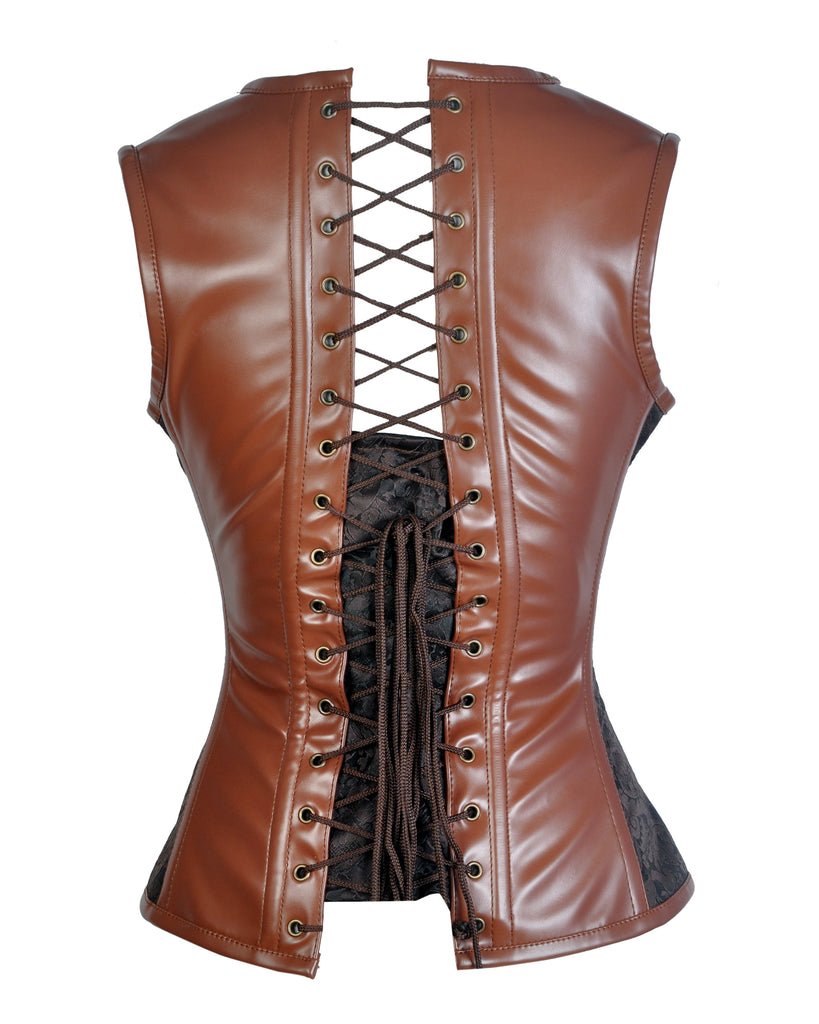- Coffee Brown & Faux Leather Steampunk Overbust Corset