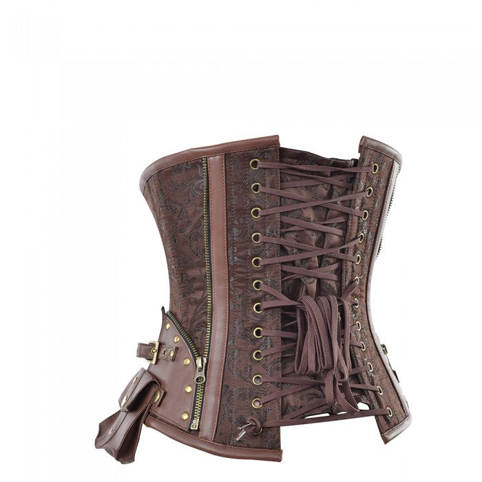 - Brown Steampunk Corset With Buckle And Pocket Detail