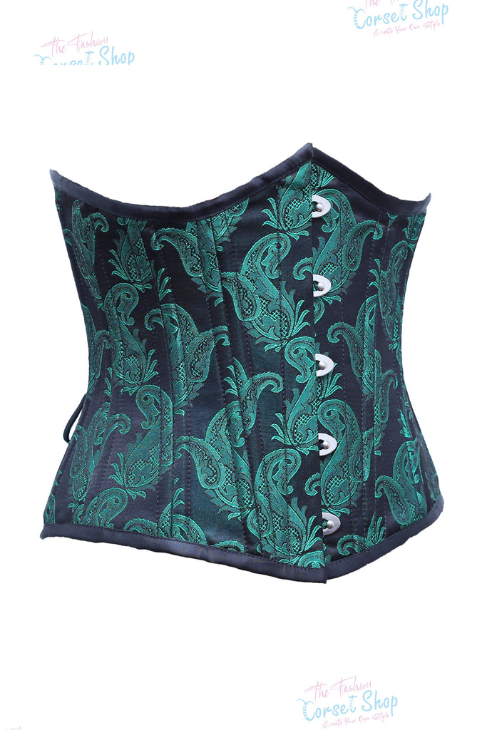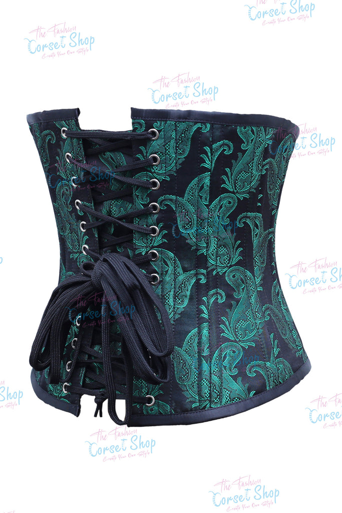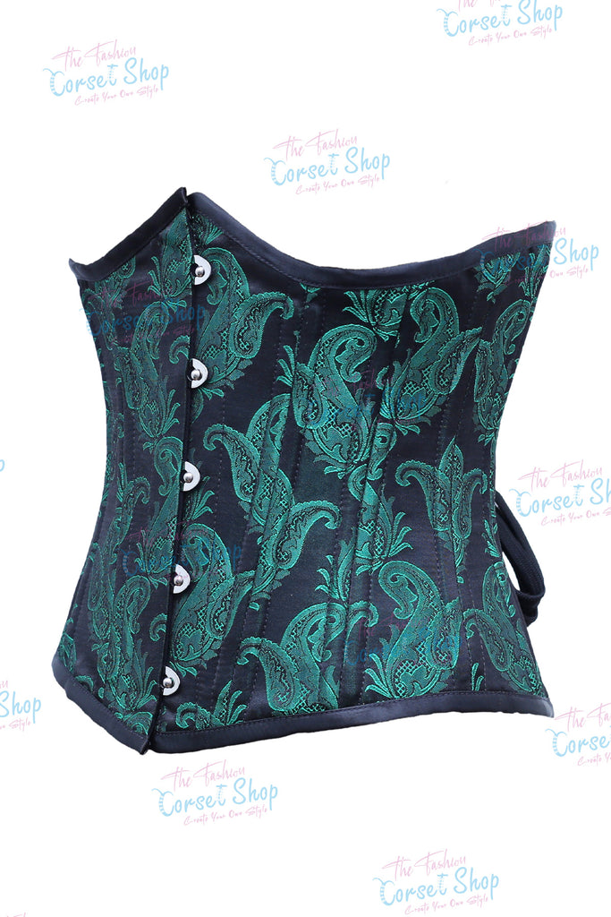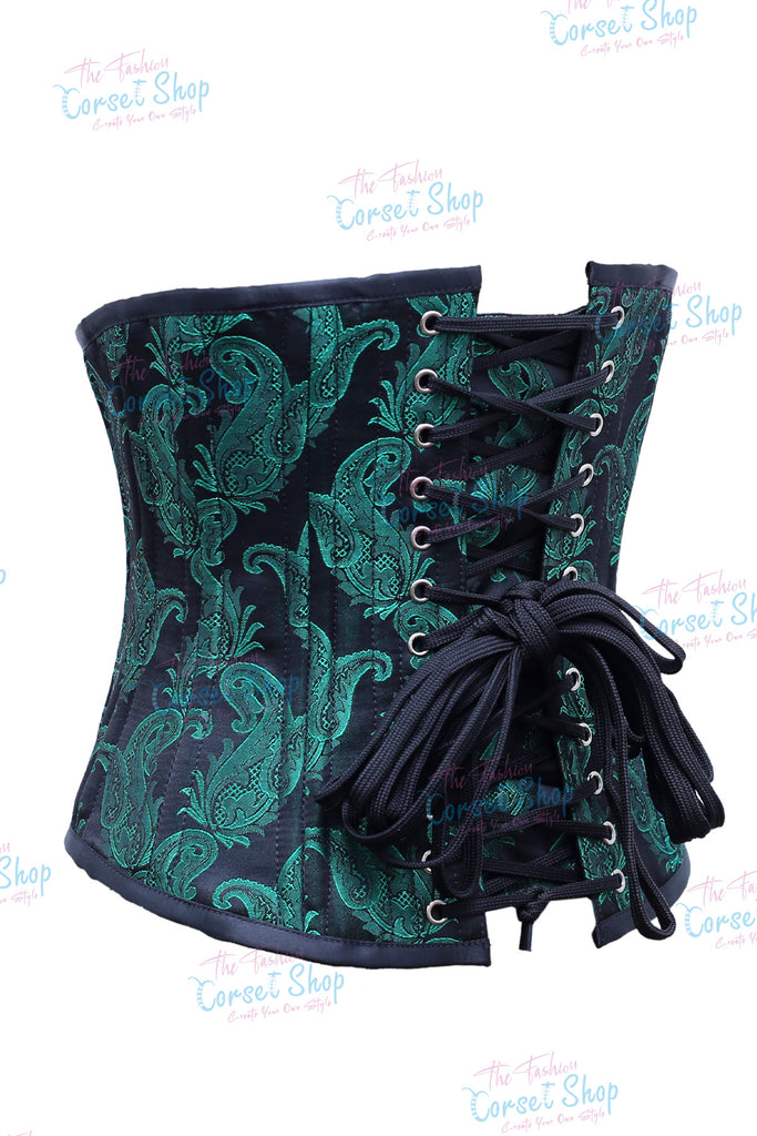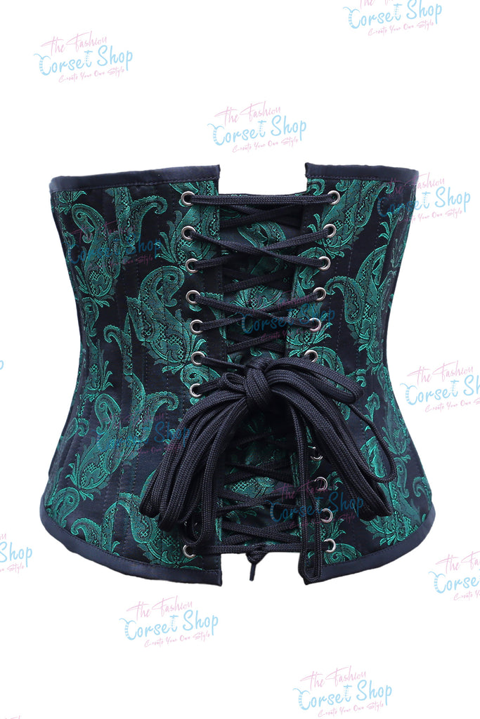 • Green Black Floral Brocade Waist Training Corset