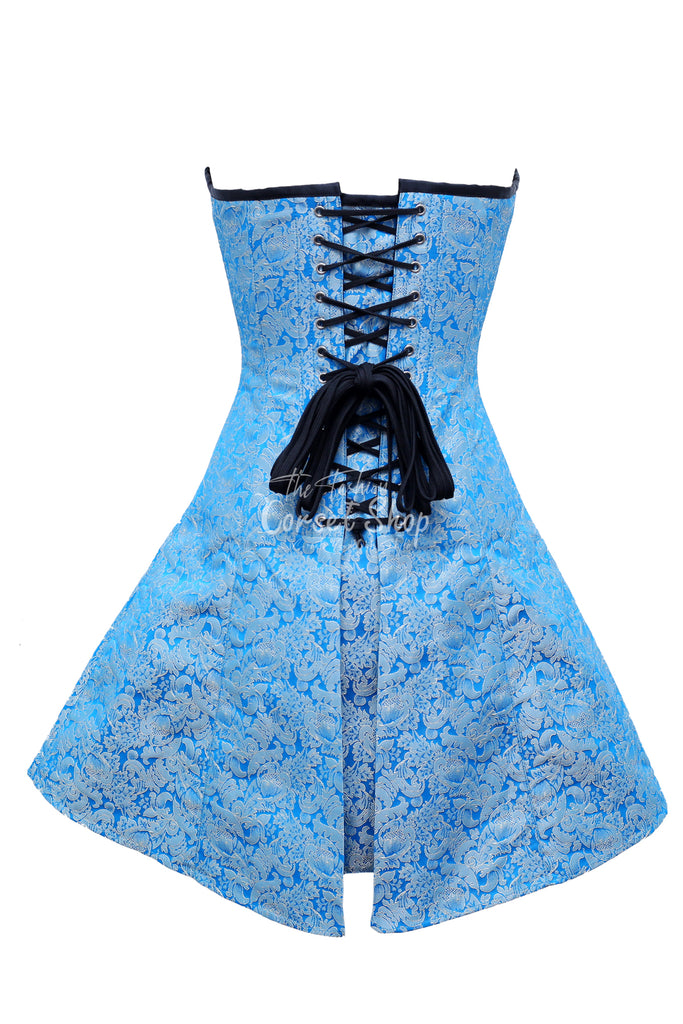 • Authentic Steel Boned Turquoise Cream Brocade Overbust Long Corset Dress