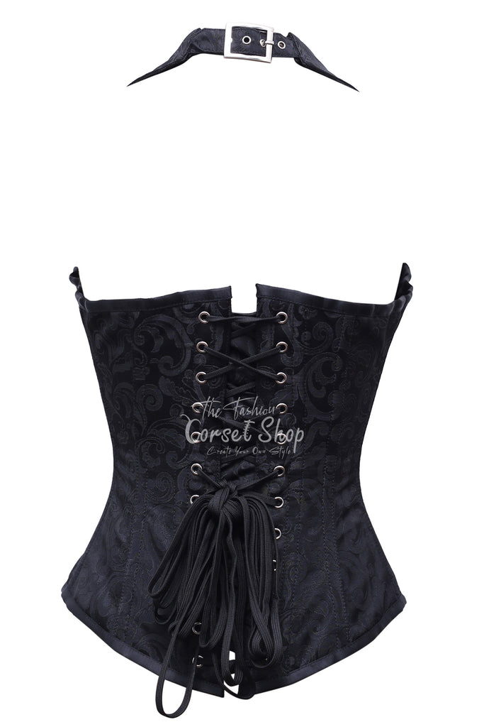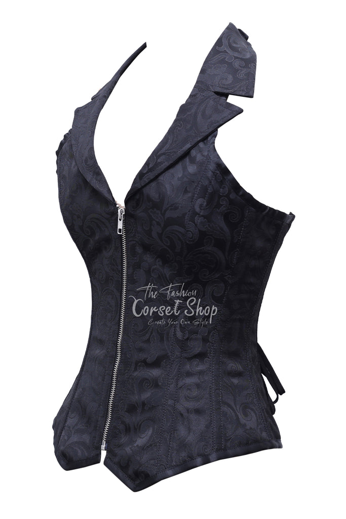 Lindsi Black Brocade Overbust Corset With Zip Front