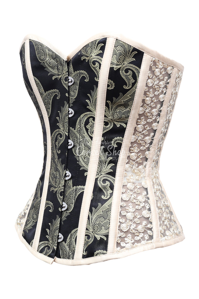 Oruz Ivory Black Brocade Embroidery Net Corset