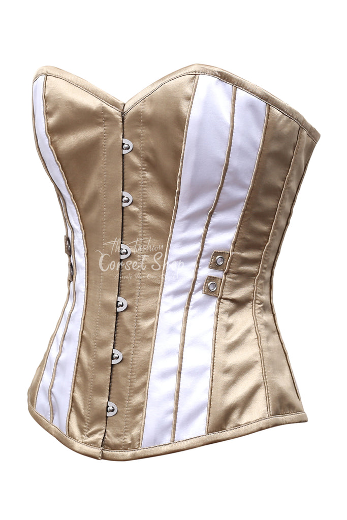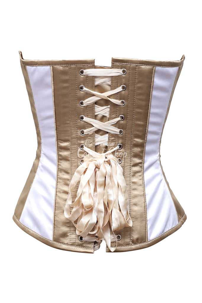 • Gold & White Satin Overbust Corset