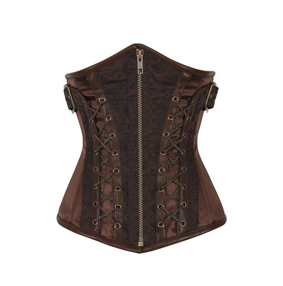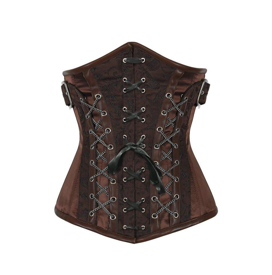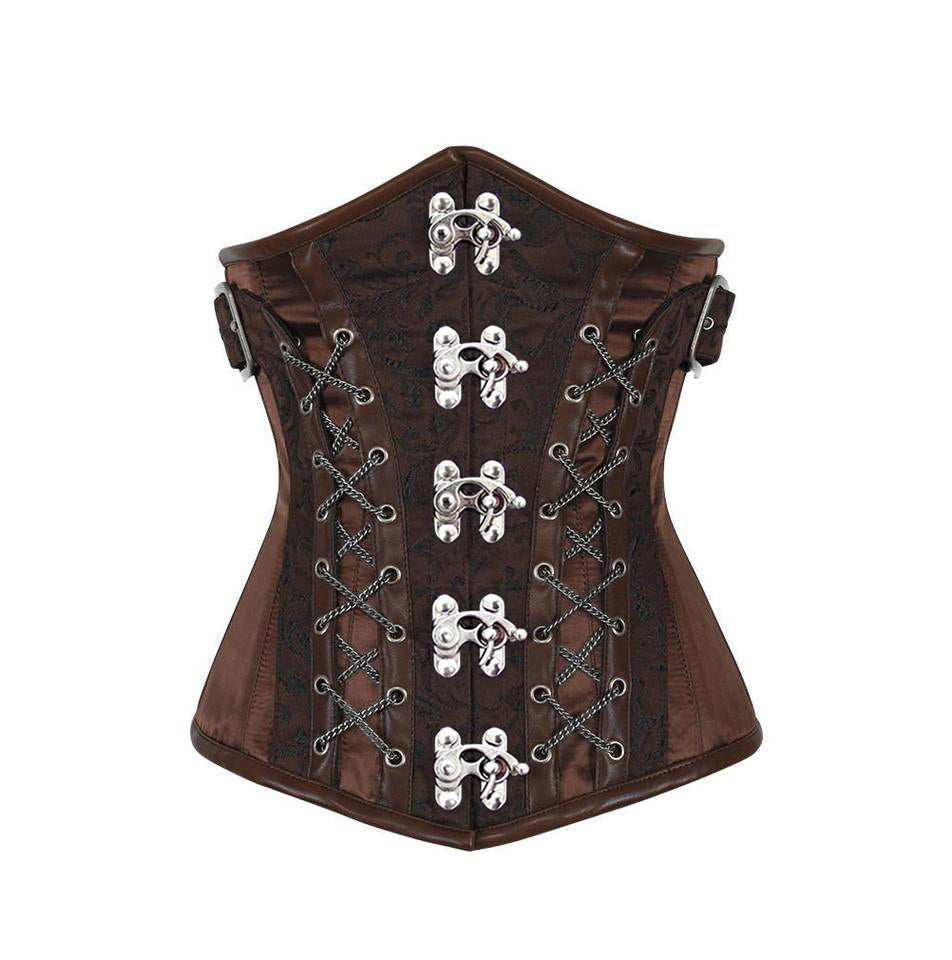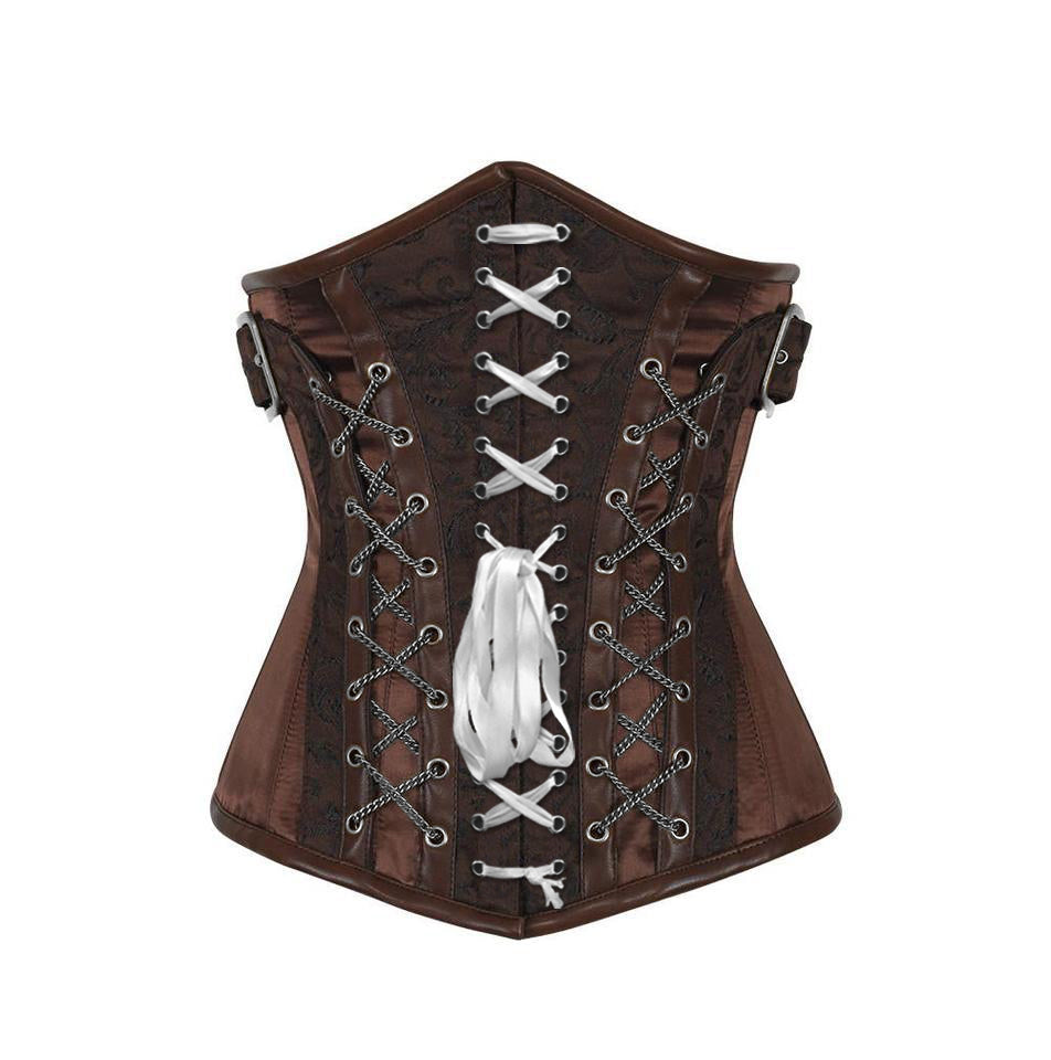 - Authentic Underbust Corset with Metal Chain Criss Cross at Front