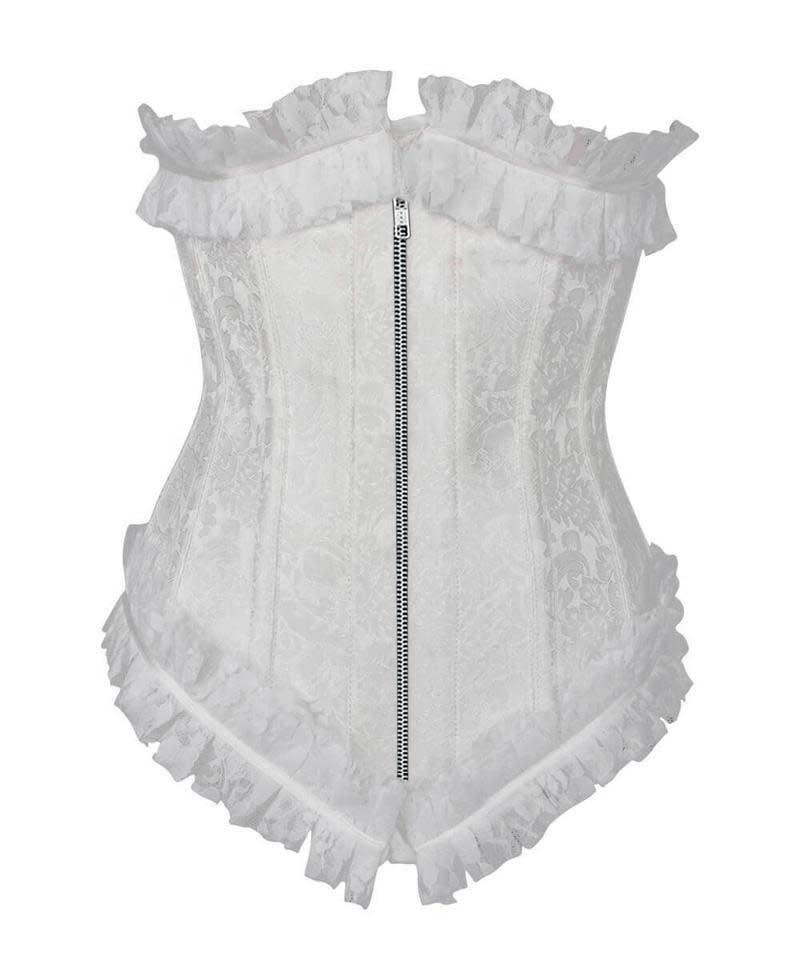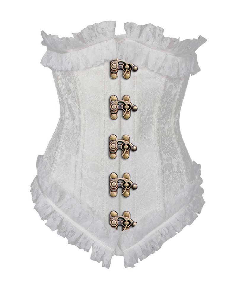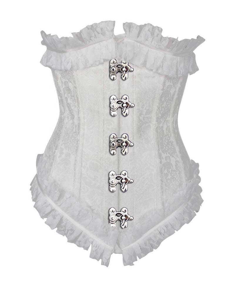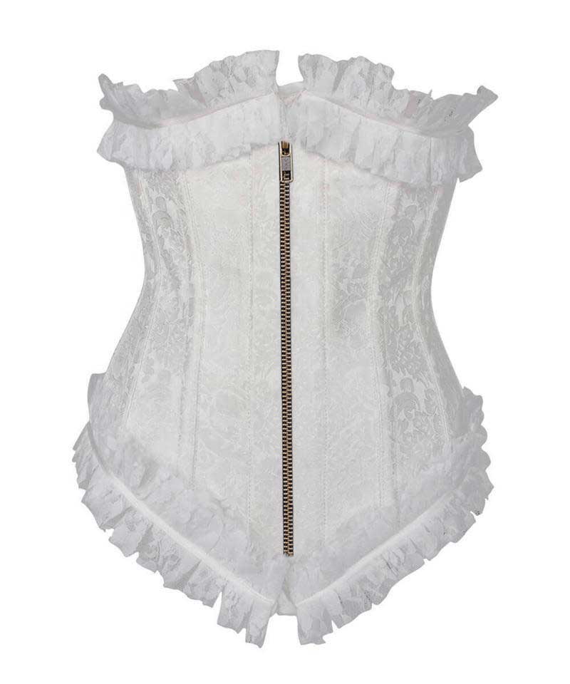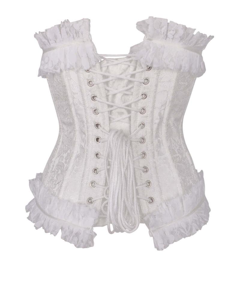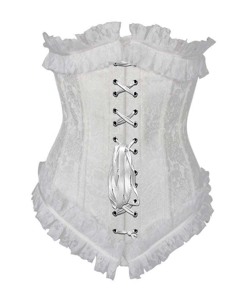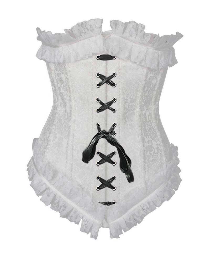 - White Brocade Underbust Corset with Lace Frill