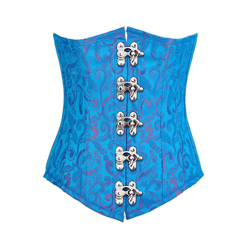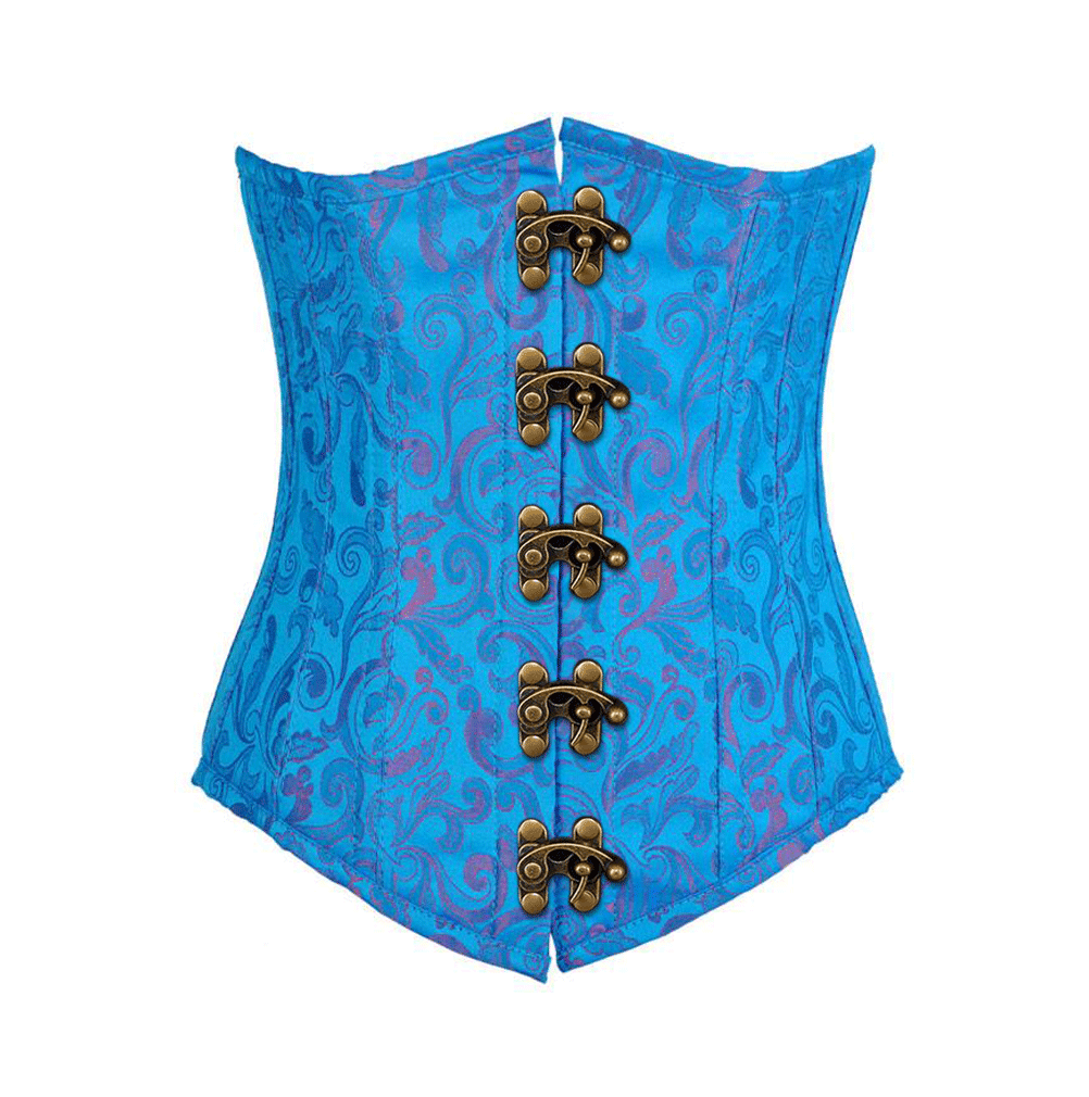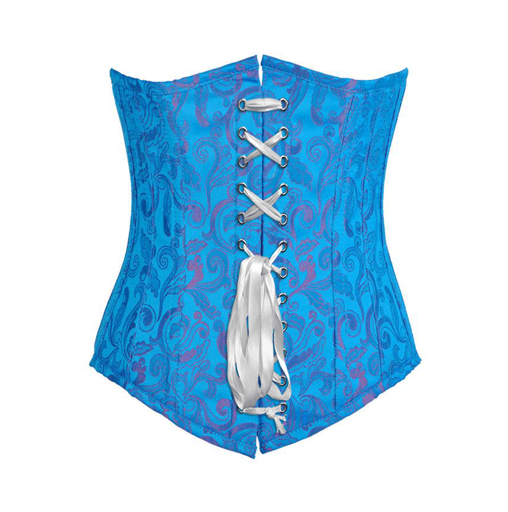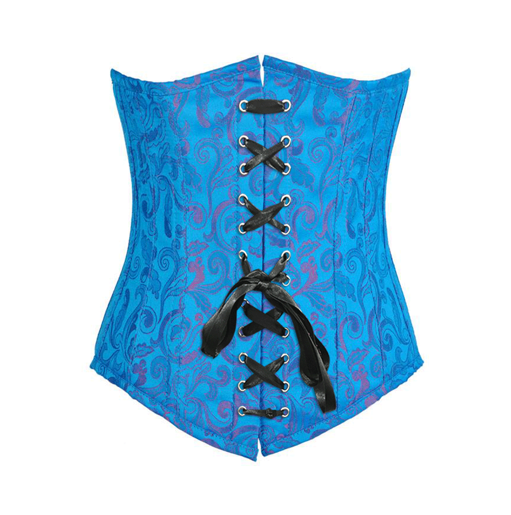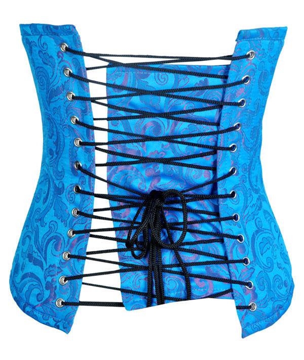 - Turquoise Brocade Longline Underbust Waist Training Corset