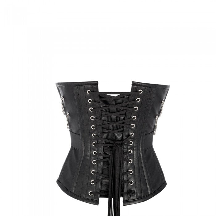 - Black Underbust Corset With Buckle And Chain Design