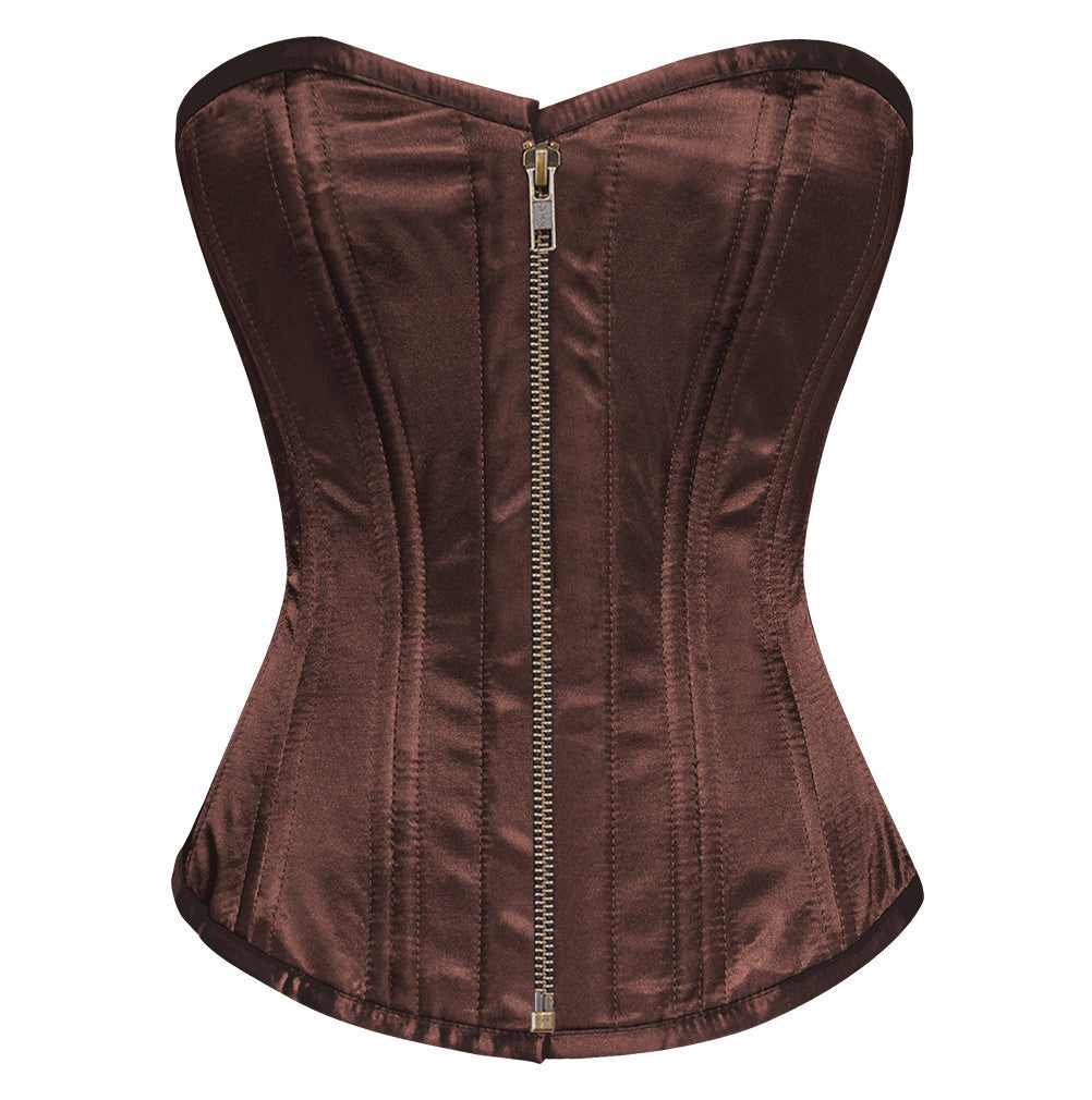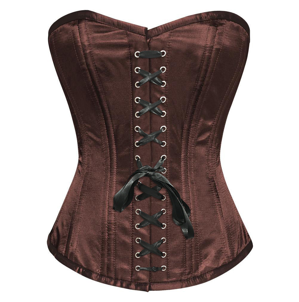 - Brown Satin Overbust Waist Training Corset